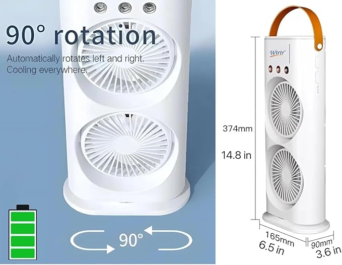Dual mist outlets provide a refreshing breeze and fine mist at the same time—ideal for cooling off during hot summer days indoors or outdoors.